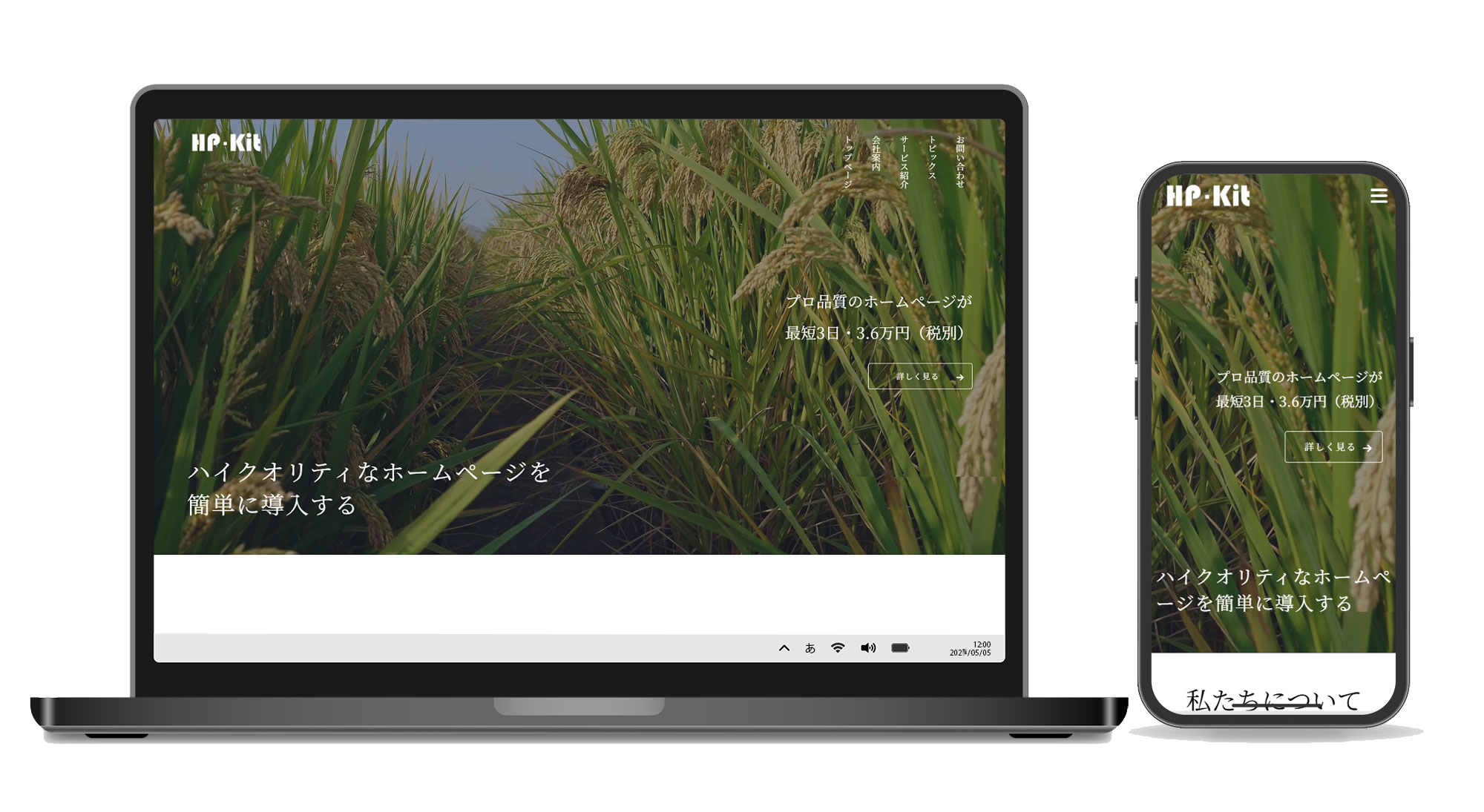 ホームページキットは、お好みのデザインのキットを選んで、写真・テキストなど必要な素材や情報を用意するだけの ホームページ簡単制作パッケージです。